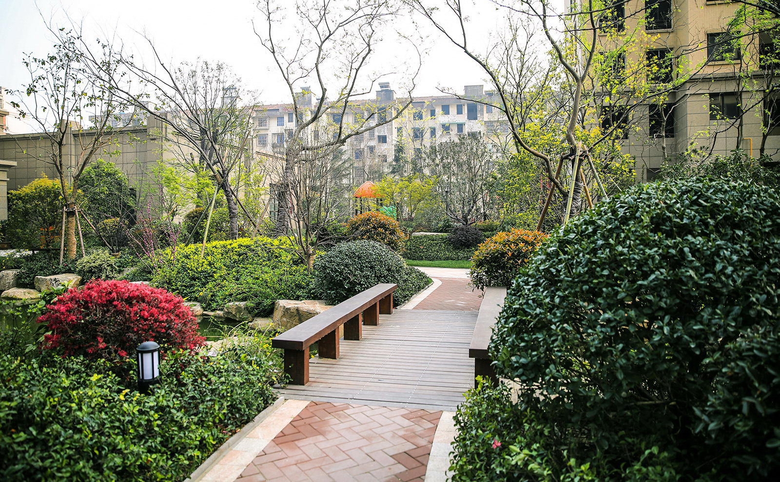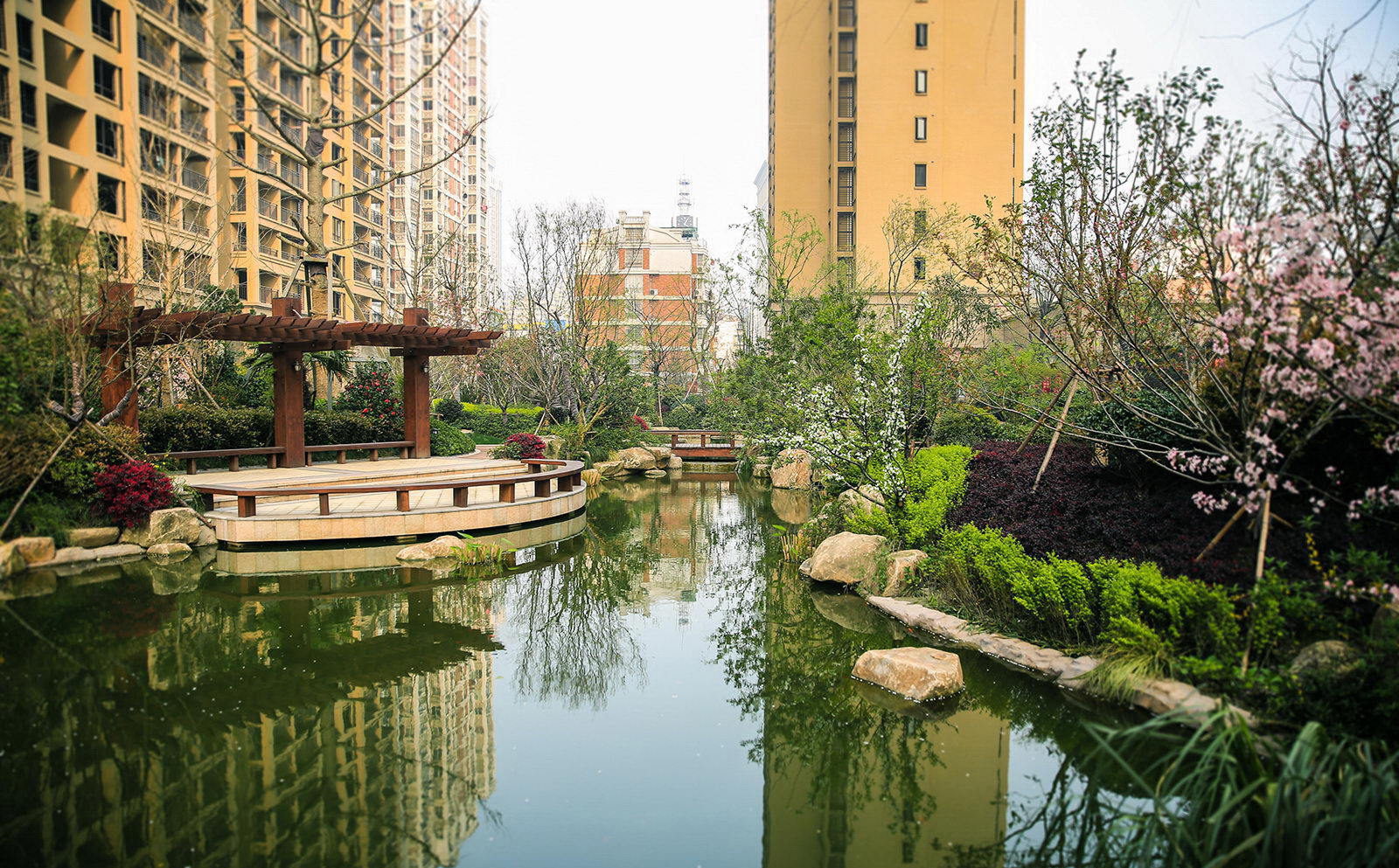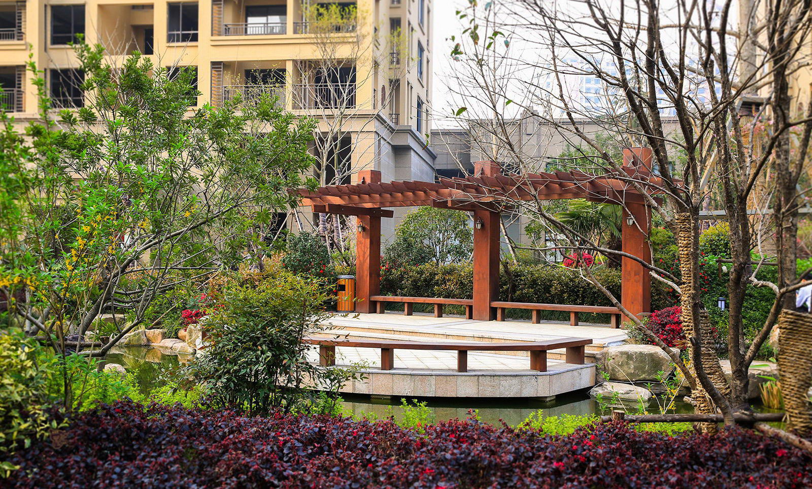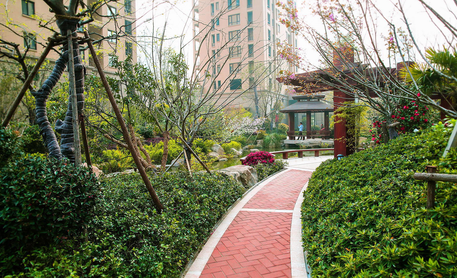 清新淡然,婉約的詩(shī)境里是對(duì)蕭山人日常生活的輕柔敘述。對(duì)學(xué)林尚苑的設(shè)計(jì),再新古典的體系下,項(xiàng)目在其憑借天然的學(xué)區(qū)優(yōu)勢(shì),人文優(yōu)勢(shì)定調(diào)蕭山都市學(xué)府之外,我們更需要給業(yè)主描繪的是一幅水逸江南的輕松生活氛圍,水脈即是文脈,精選的置石,亭、廊尺度相宜,特別是對(duì)植物的選樣上,更是一次次的優(yōu)選,在自然的境界上更追求枝條的舒展度,生活之中花木扶蘇,人生境界自然從容。