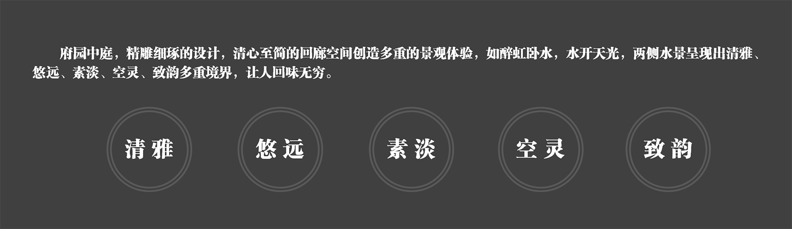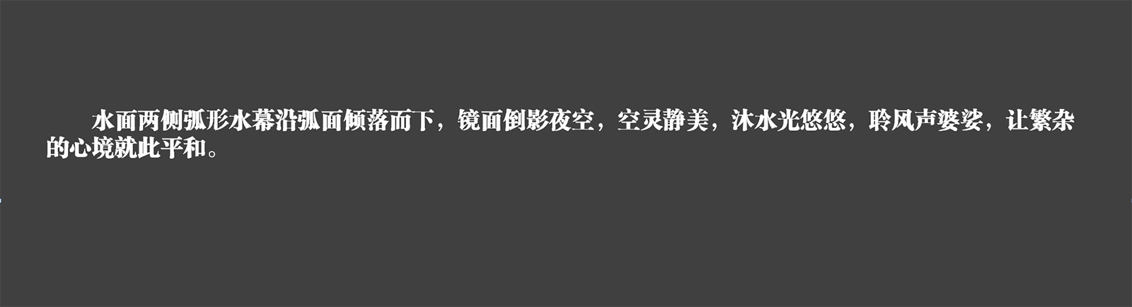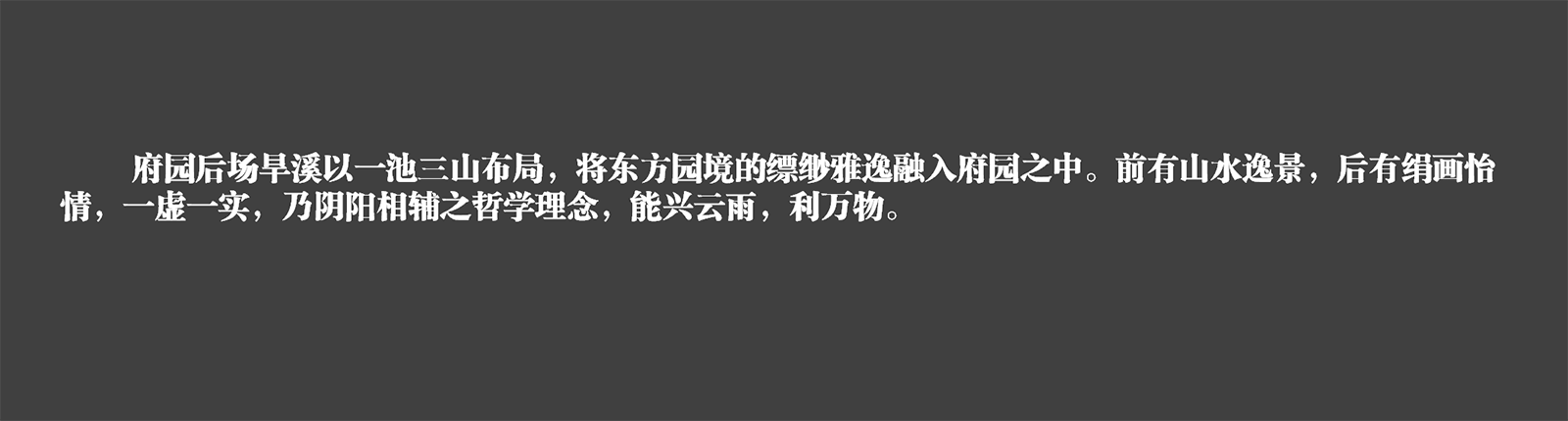 鏡面水景輕靈、優雅、致韻;雙排四座宮燈雕琢萬字符,寓意前程萬福。
