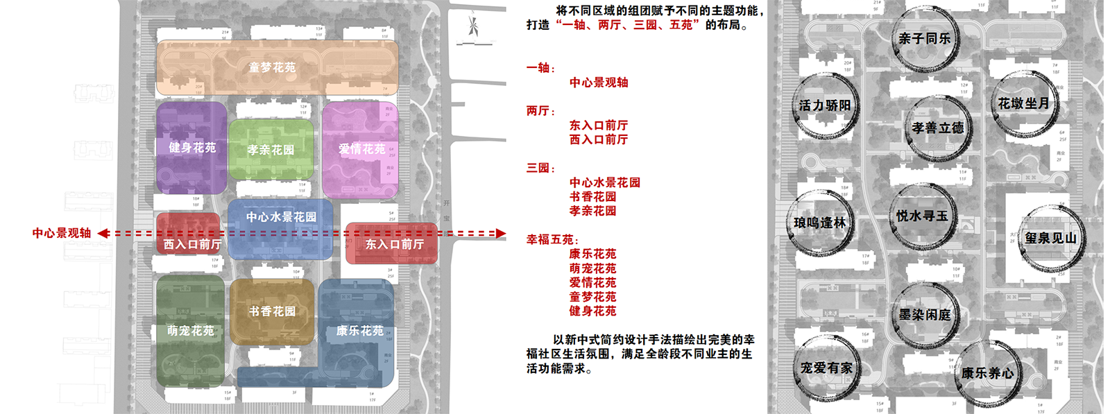 》》》》一軸:提煉東西兩大入口,結(jié)合中心花園,將其形成一條主軸線,將禮儀與尊貴通過軸線展現(xiàn)出來,一軸定鼎璽瑯恢宏氣度,東方府境,園林與人文纏綿交織,山與水二物,人于園擷趣,或風(fēng)或雅,賞心悅事,以此表現(xiàn)出璽瑯府的寓意和尊貴。