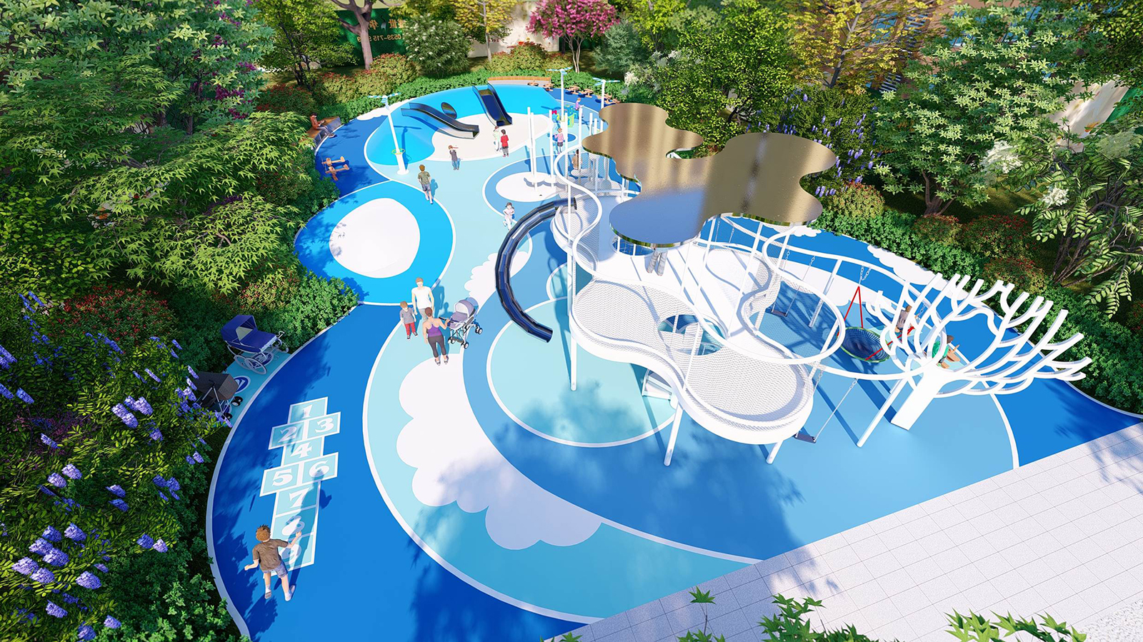 孩子是未來和希望, 盛世華府的設計過程一直都在思考場地與人群體驗之間的關系,“業(yè)主的訴求”和“孩子們真正的體驗”是否能夠統(tǒng)一。